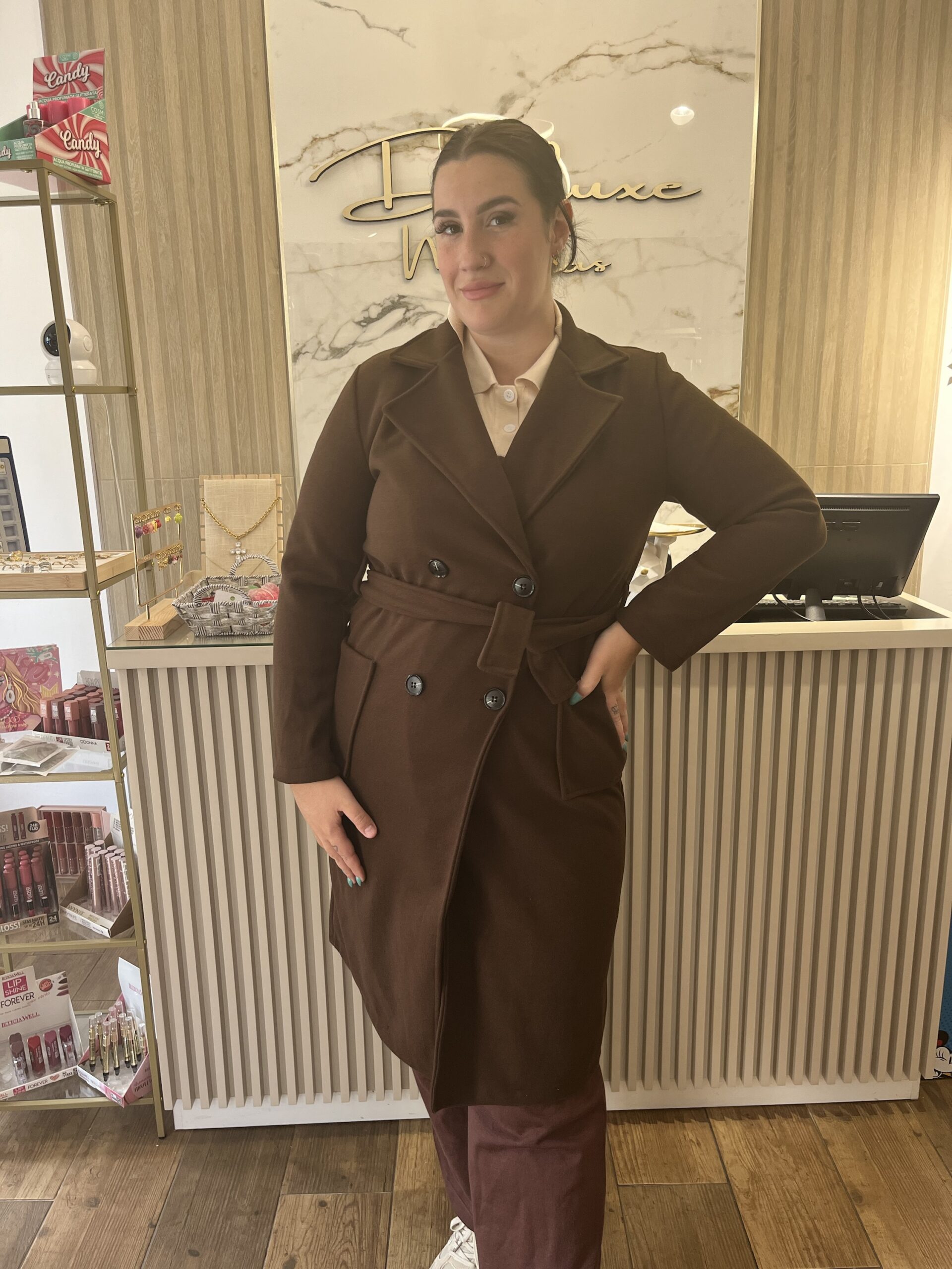 Abrigo de paño con botones y cinta tipo cinturón . Talla única . Recomendado desde 36/46