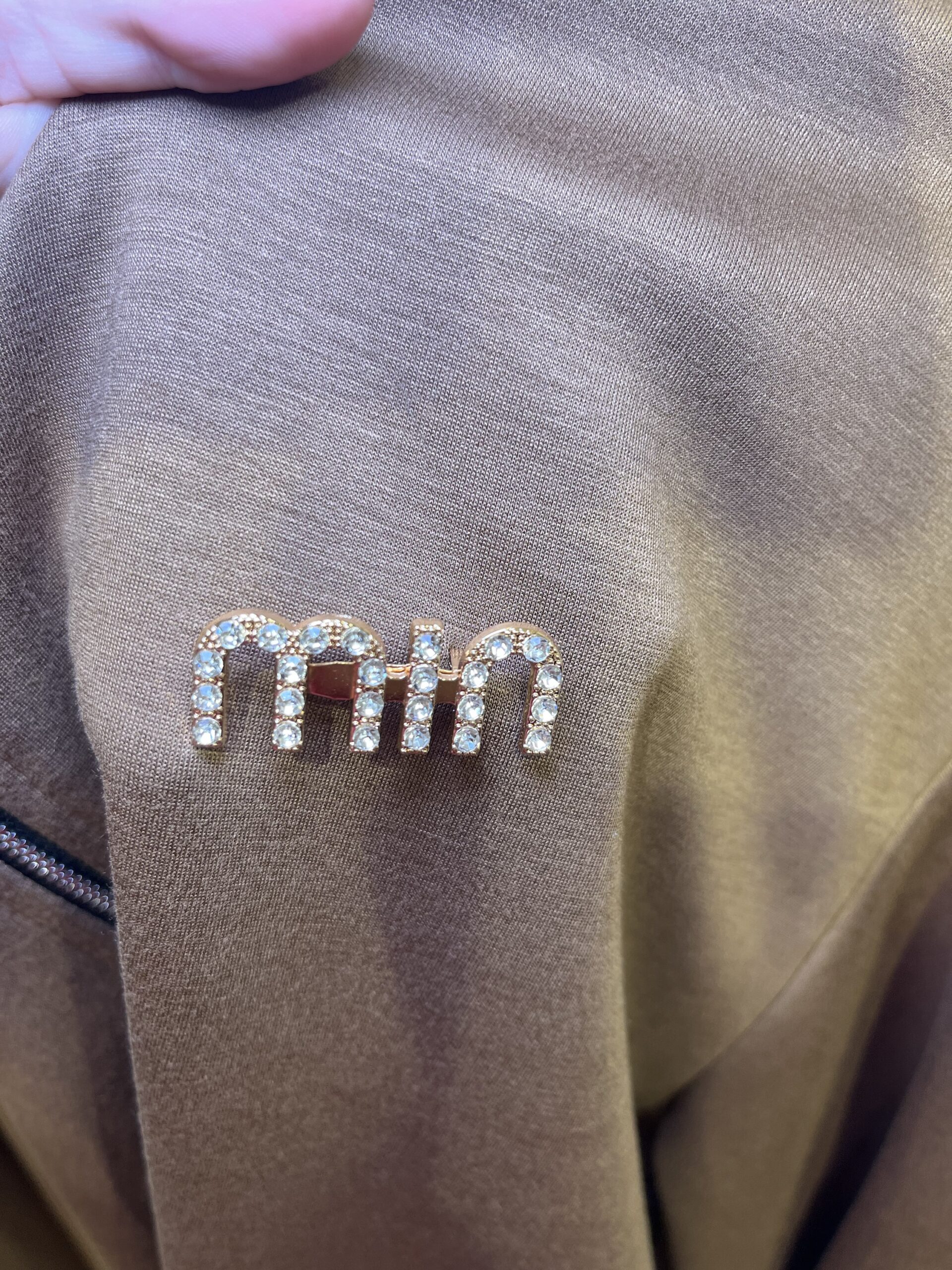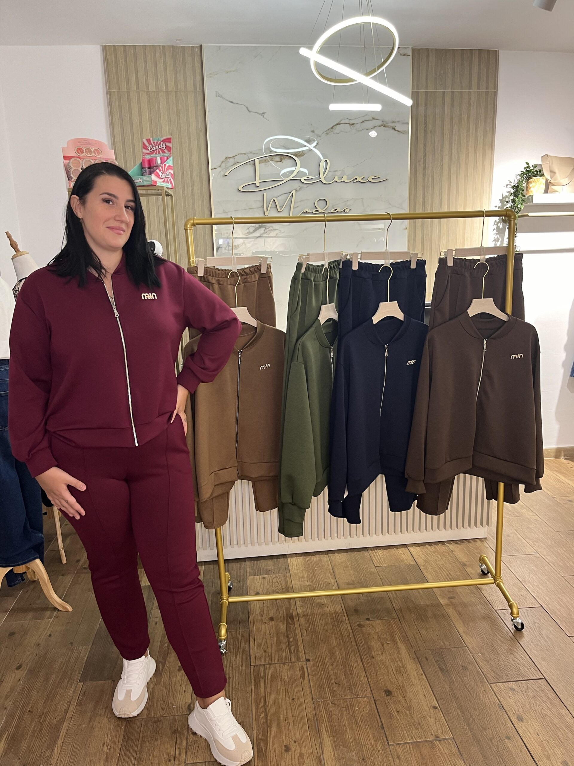 Conjunto de dos piezas de tacto super agradable . Pantalón con cinturilla elástica . La parte de arriba lleva cremallera y un pin que se quita que pone Miu . Talla única . Recomendado desde talla 36-48. La modelo usa talla 42/44