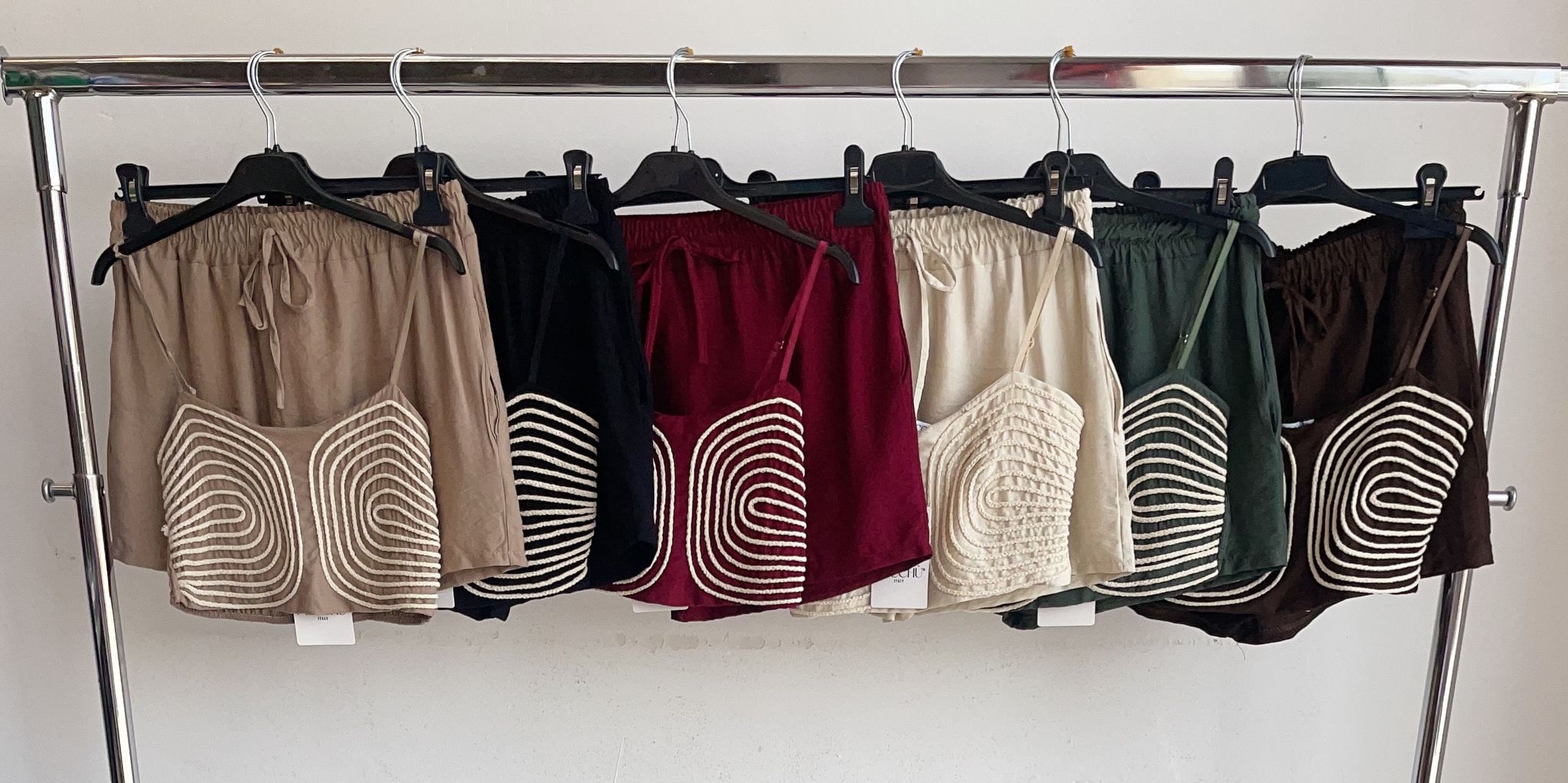 Conjunto de dos piezas . Parte superior con tirantes ajustables y detalle en la zona del pecho . Pantalón con cinturilla elástica y bolsillos . Talla única . Recomendado desde 34 a 40/42