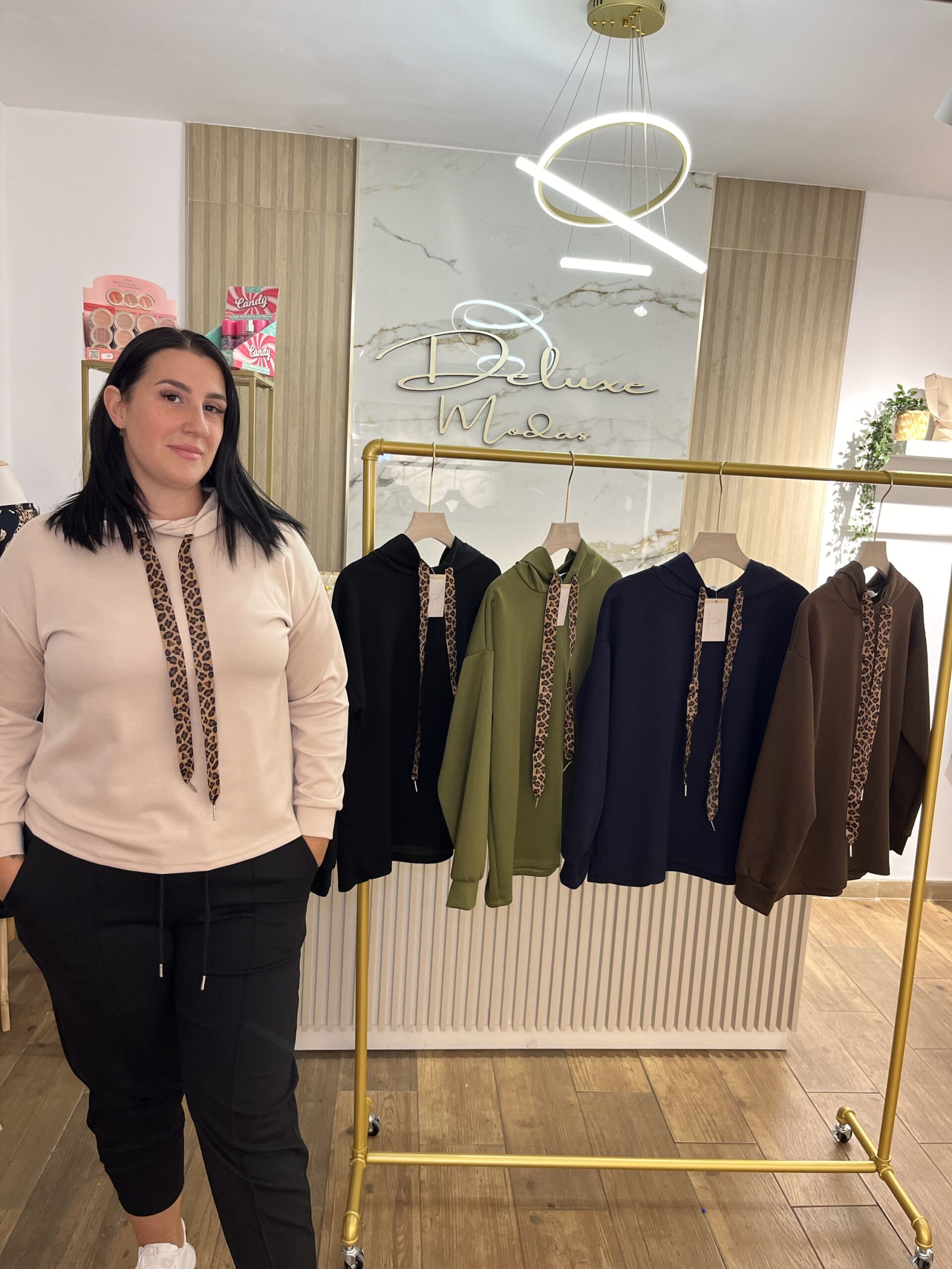Sudadera con gorro y detalle de leopardo en las cuerdas . Talla única . Recomendada desde una 36/46 . La modelo usa talla 42/44